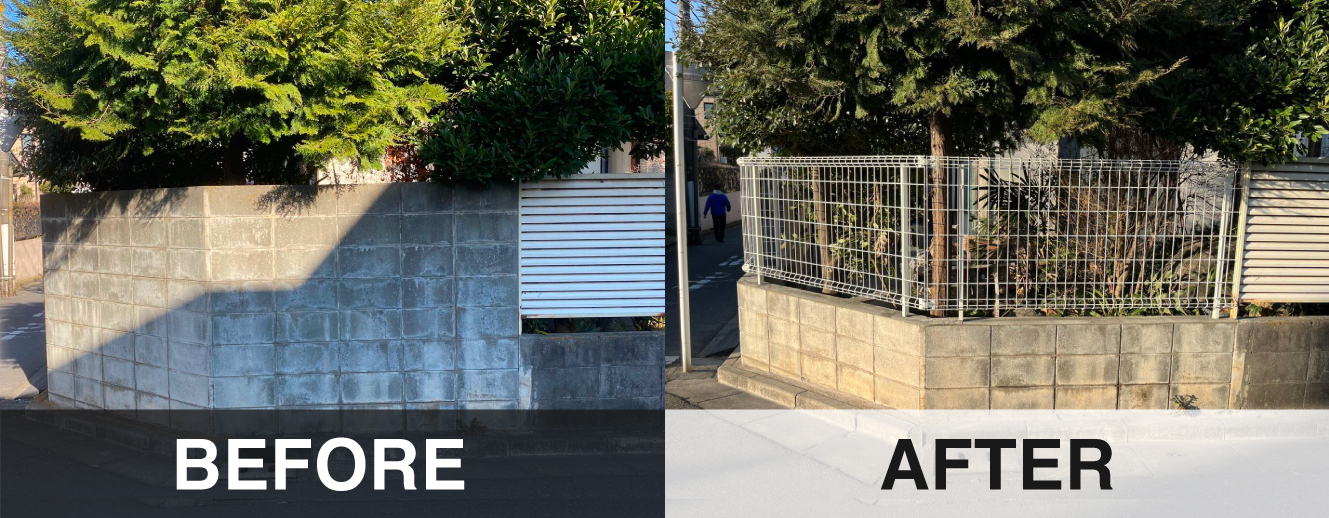 ブロックが撤去されたことで陽の光が入るようになりました!このような解体から新設まで、幅広く施工しております!